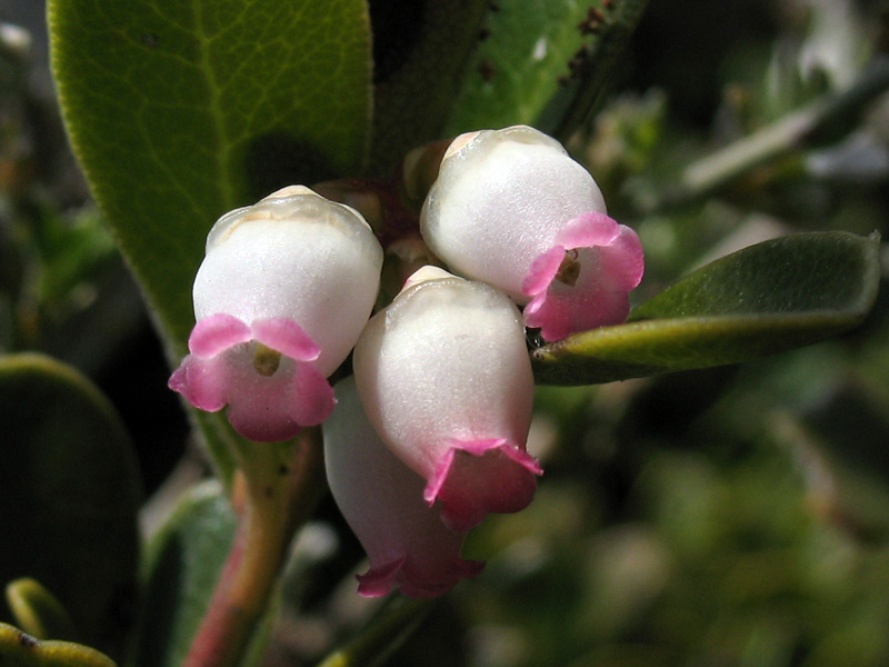 In primavera, l’Uva ursina produce graziosi fiori a campanella, di colore bianco-rosato, riuniti in piccoli grappoli. La forma è delicata, simile a minuscole lanterne rivolte verso il basso.